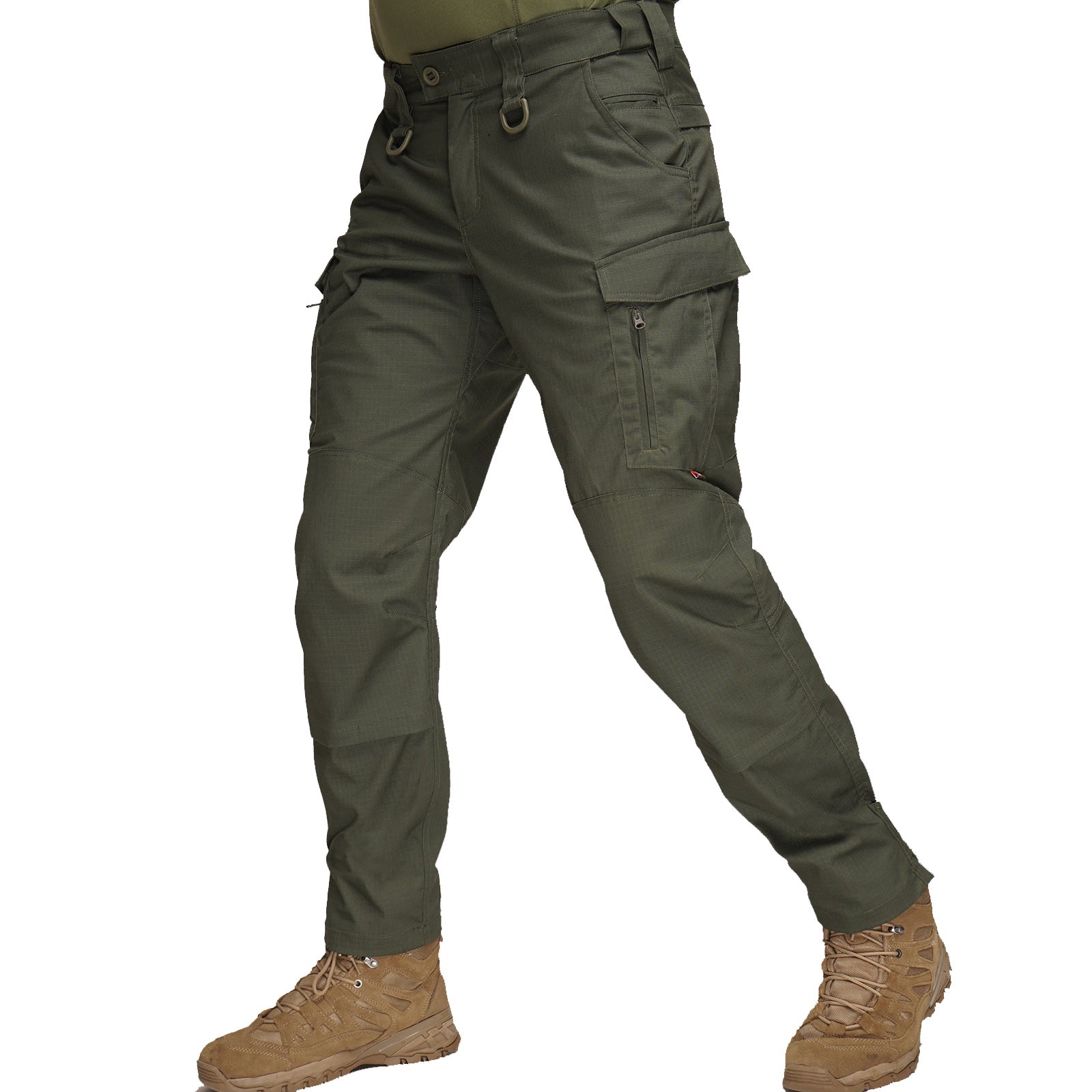 يتكون القماش من 58% بوليستر و39% قطن و3% إيلاستين، مما يجعله لطيف الملمس ومقاوم للتمزق والتلف. نسج Ripstop يمنع تمزق البنطلون حتى تحت الأحمال الثقيلة.
