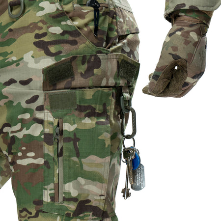 2 حلقات كارابينر في مقدمة البنطلون وفي جيوب الشحن