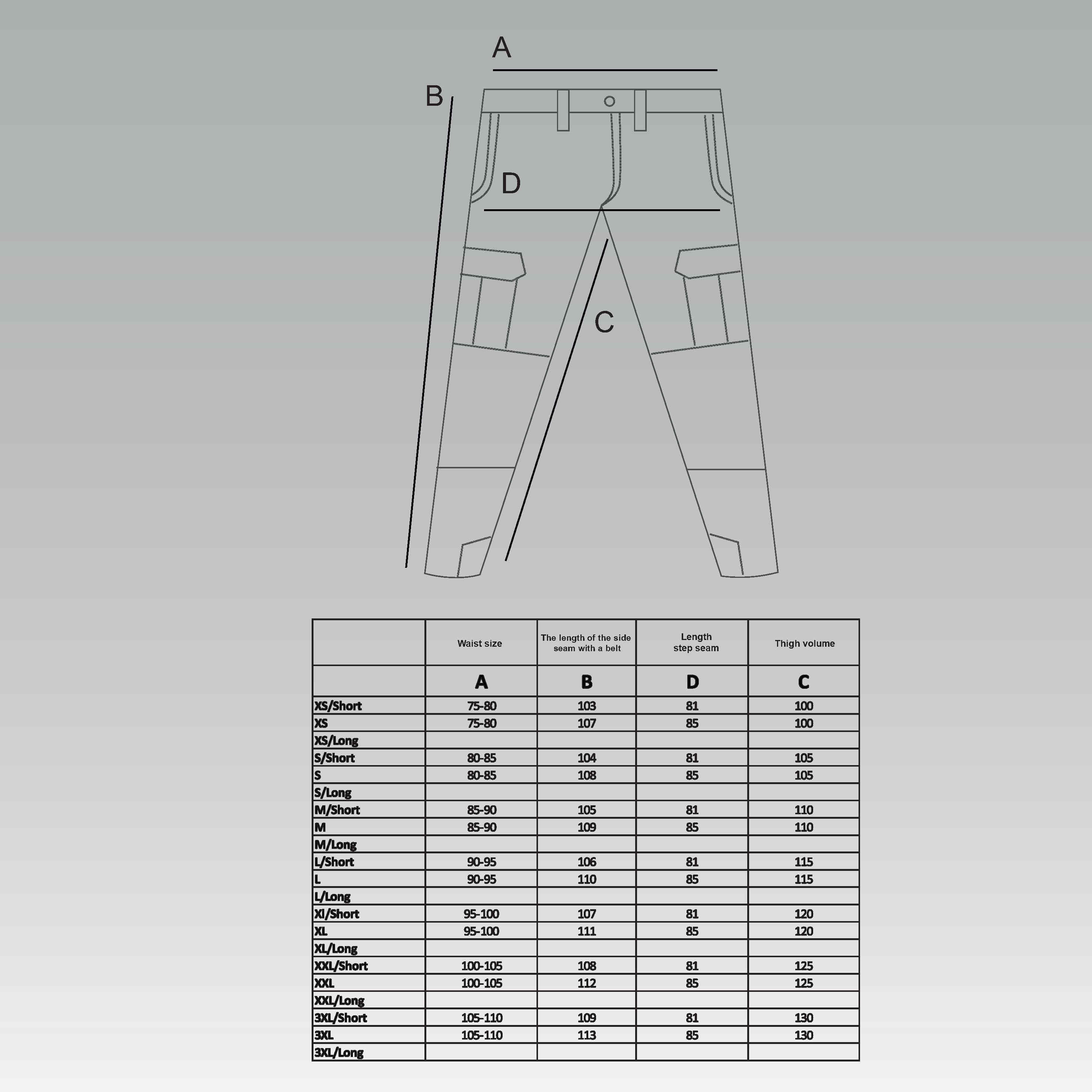 يتكون القماش من 65% قطن و35% بوليستر، مما يجعله لطيف الملمس ومقاوم للتمزق والتلف. نسج Ripstop يمنع تمزق البنطلون حتى تحت الأحمال الثقيلة.
