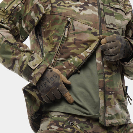 The UATAC Gen 5.6 Multicam Ripstop demi-season jacket is specially designed for professional personnel who are actively moving and performing tasks. The design and placement of all elements of the jacket take into account the needs of the professional, as well as the experience of using professional clothing in battles. The outer fabric of the jacket is a super durable Ripstop, stitched with reinforced threads of German production. The convenience of the UATAC Gen 5.6 Multicam Ripstop Climashield Apex demi-season jacket lies in its windproof and water-repellent durable face material. It consists of high-quality Ripstop laminate, which blocks the wind and has a water-repellent impregnation, which keeps you from moisture and drizzle. For active use in various conditions, elbows, shoulders, lower back and waist, which are most affected, are additionally reinforced with CORDURA® 500d MultiCam Brookwood® USA fabric, which provides greater resistance to abrasion and tear, and increases protection during operations. The jacket is maximally adapted for wearing vest, gear harness, and other equipment