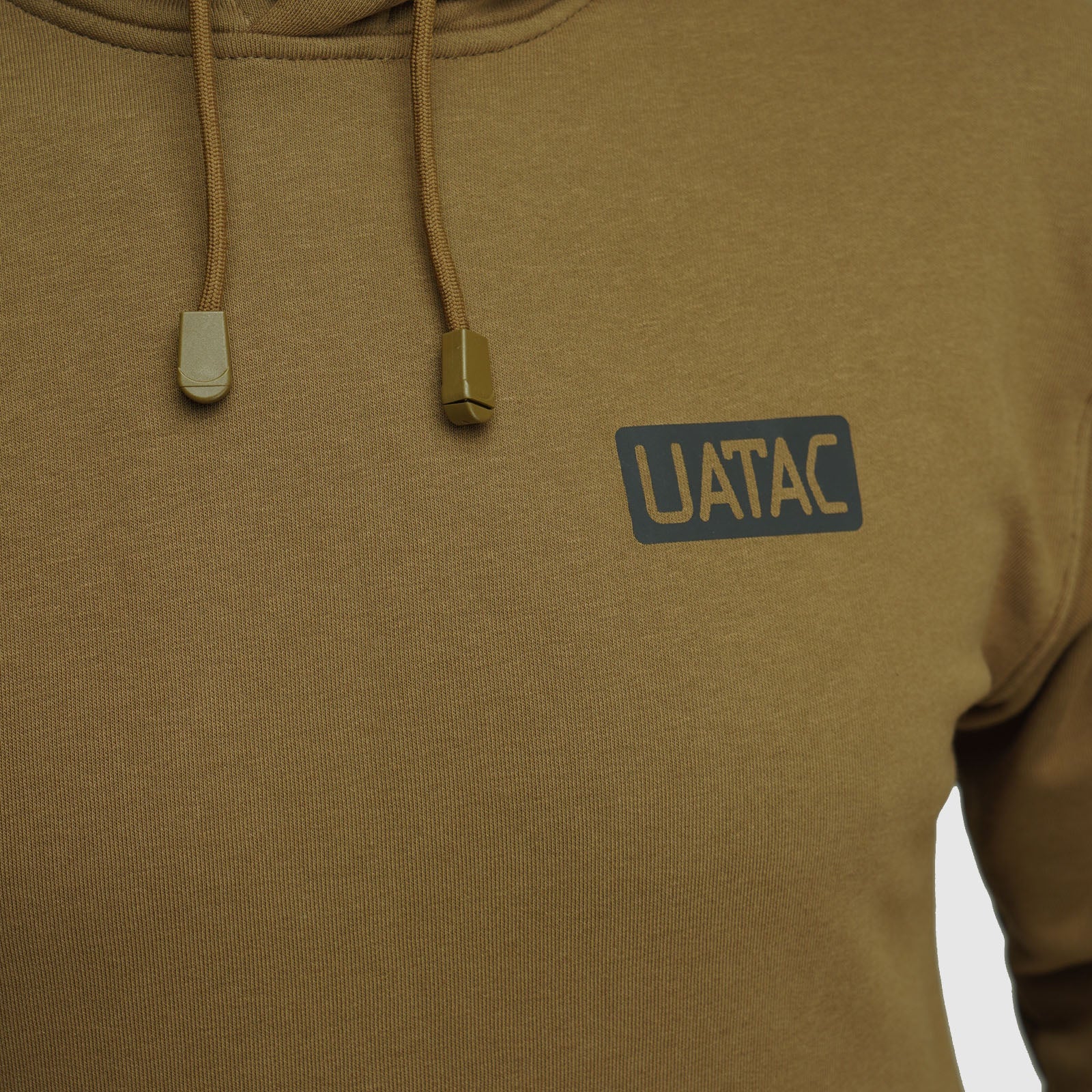 The design includes a practical central kangaroo pocket with side YKK zippers — strong, reliable, and easy to use. The hood comes with adjustable drawstrings, while elastic cuffs and waistband provide a secure fit. A UATAC logo print on the chest adds a signature touch to the look.