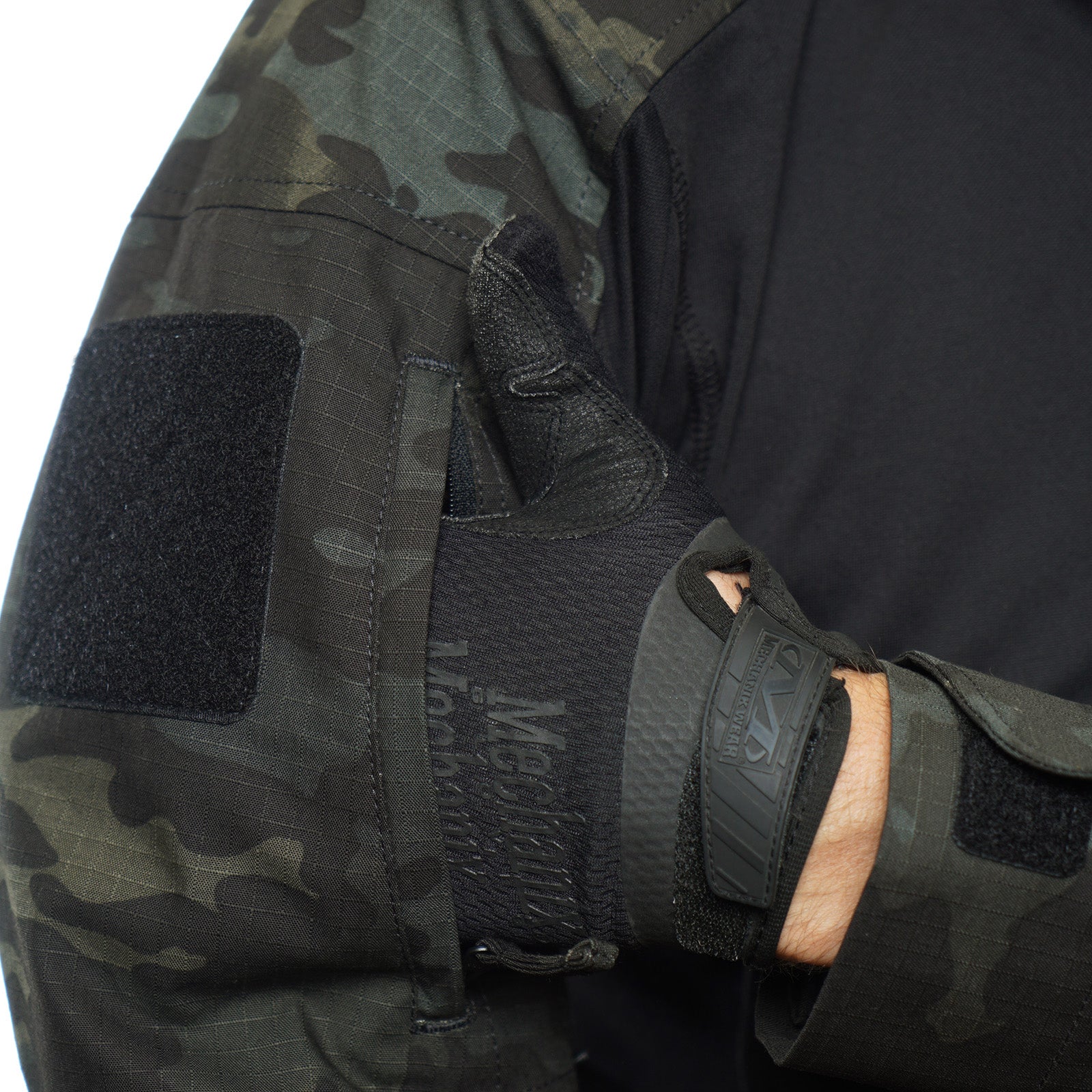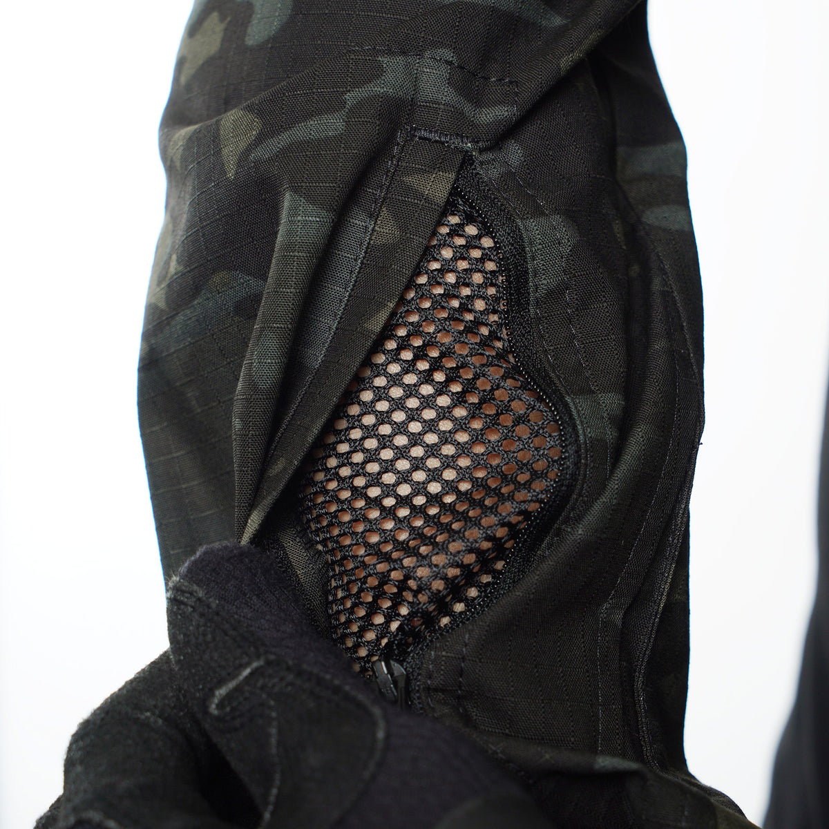 - The shirt comes with insertable elbow pads (included), made from EVA material. The outer side of the elbows is reinforced with durable CORDURA® 500d MultiCam Brookwood® USA, providing additional protection and longevity.