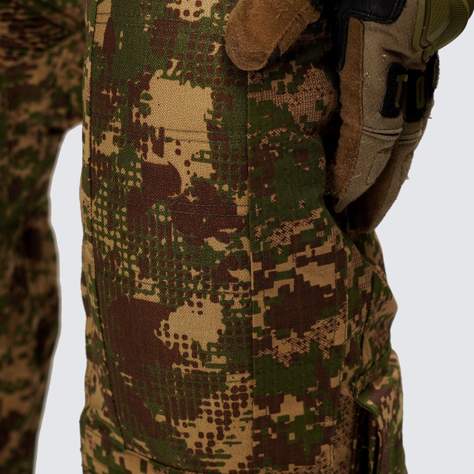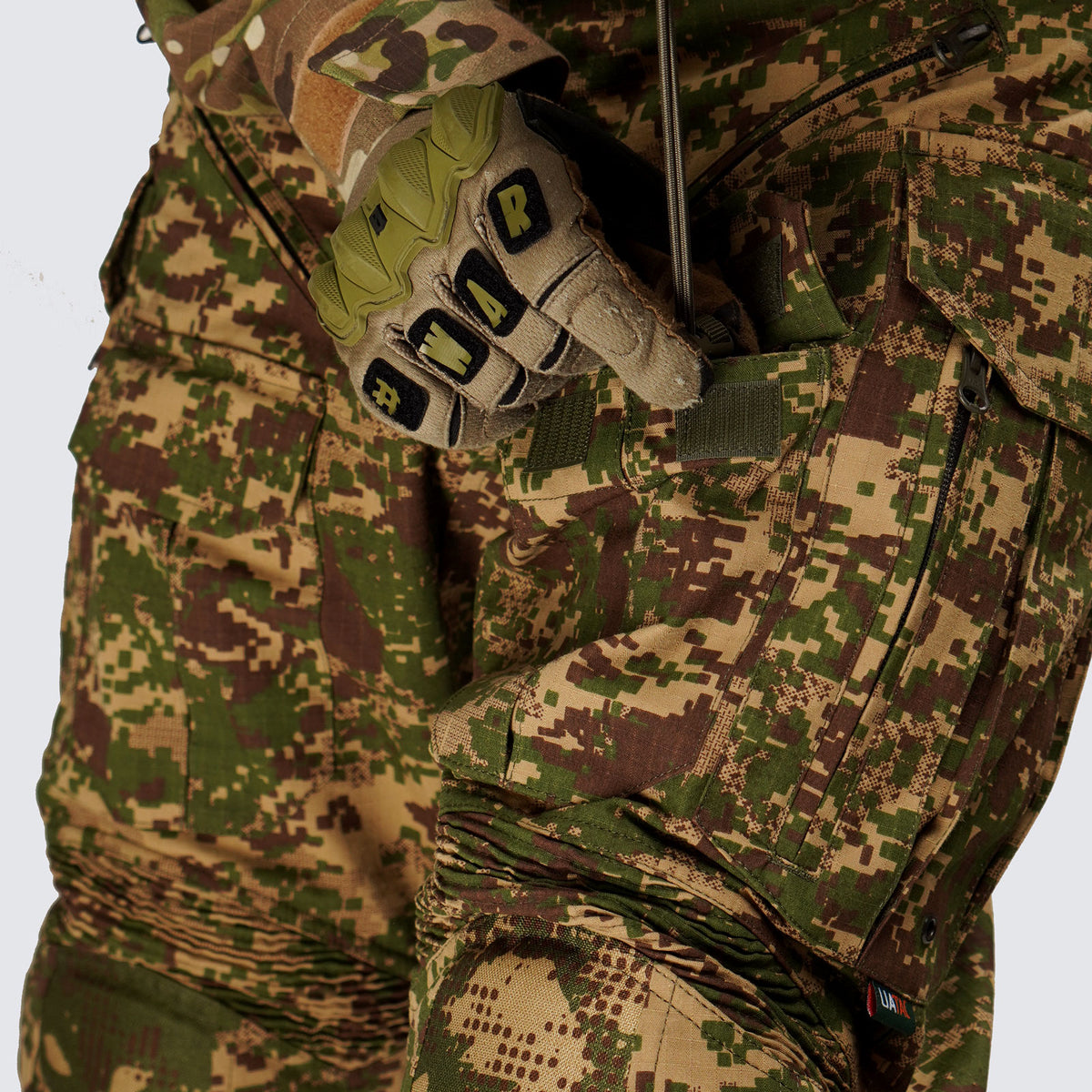 The UATAC Gen 5.6 Khyzhak Pixel assault pants with knee pads have the following features: