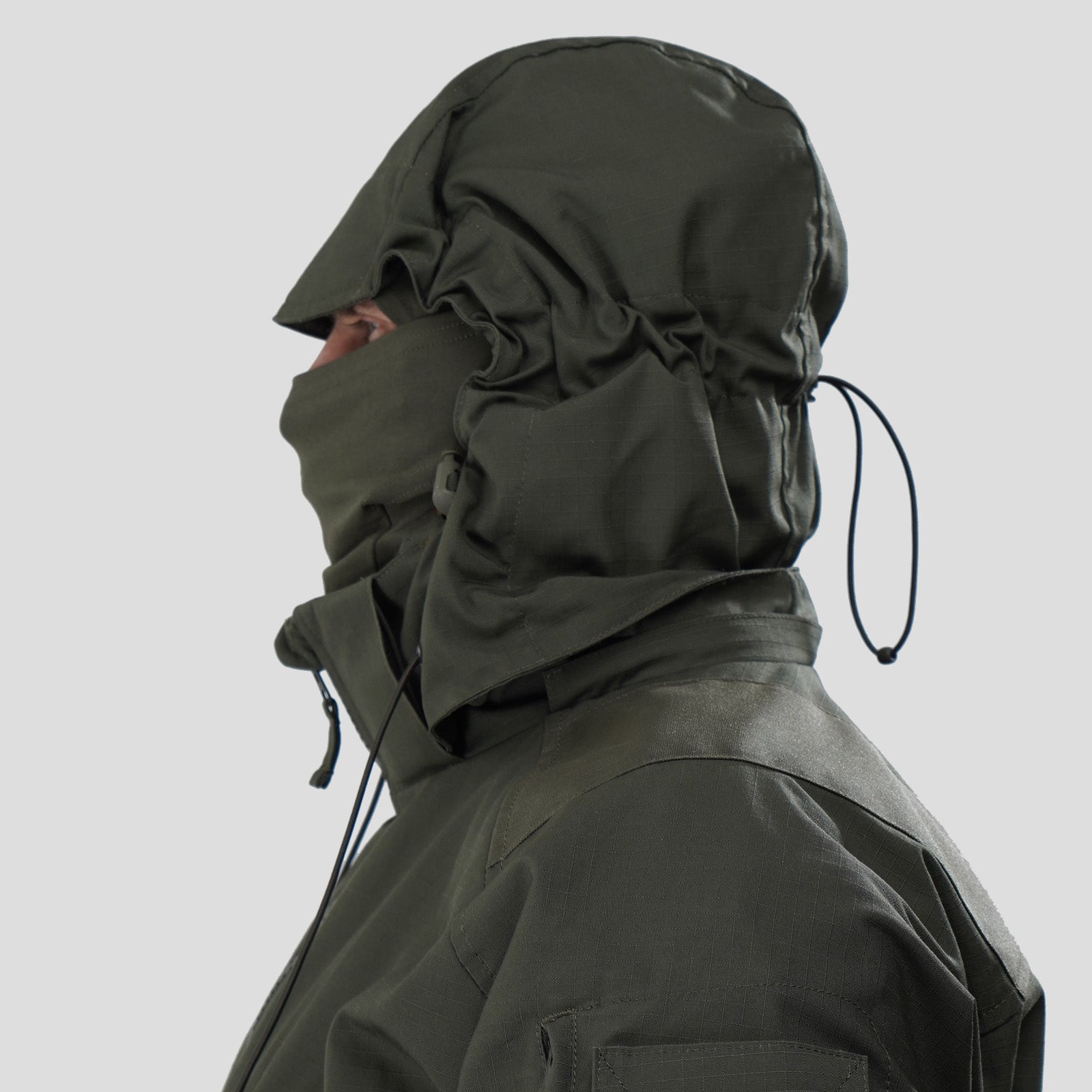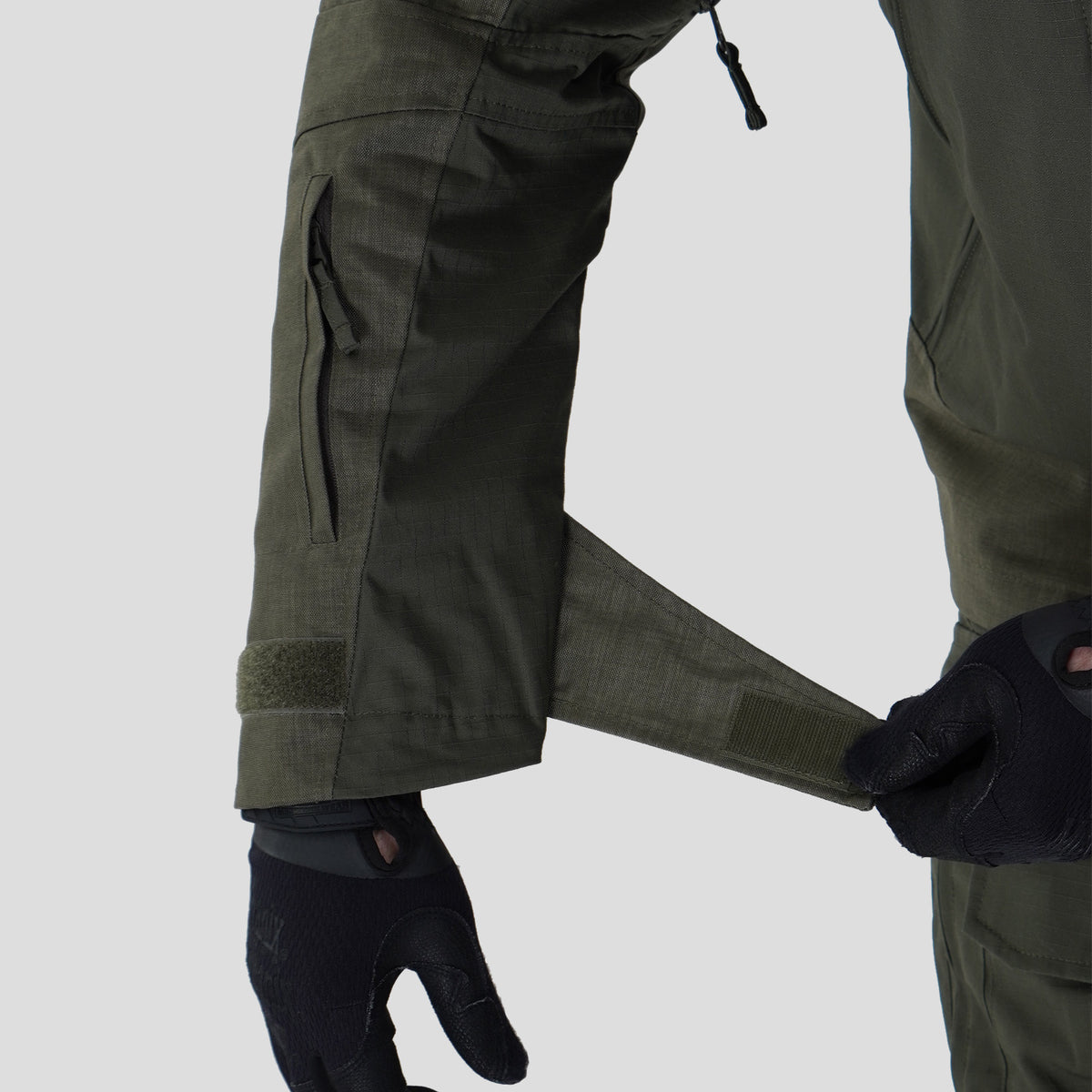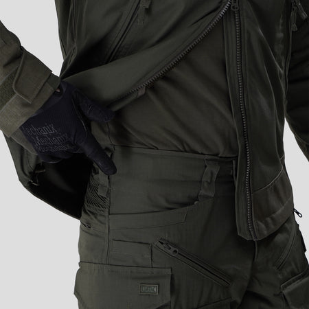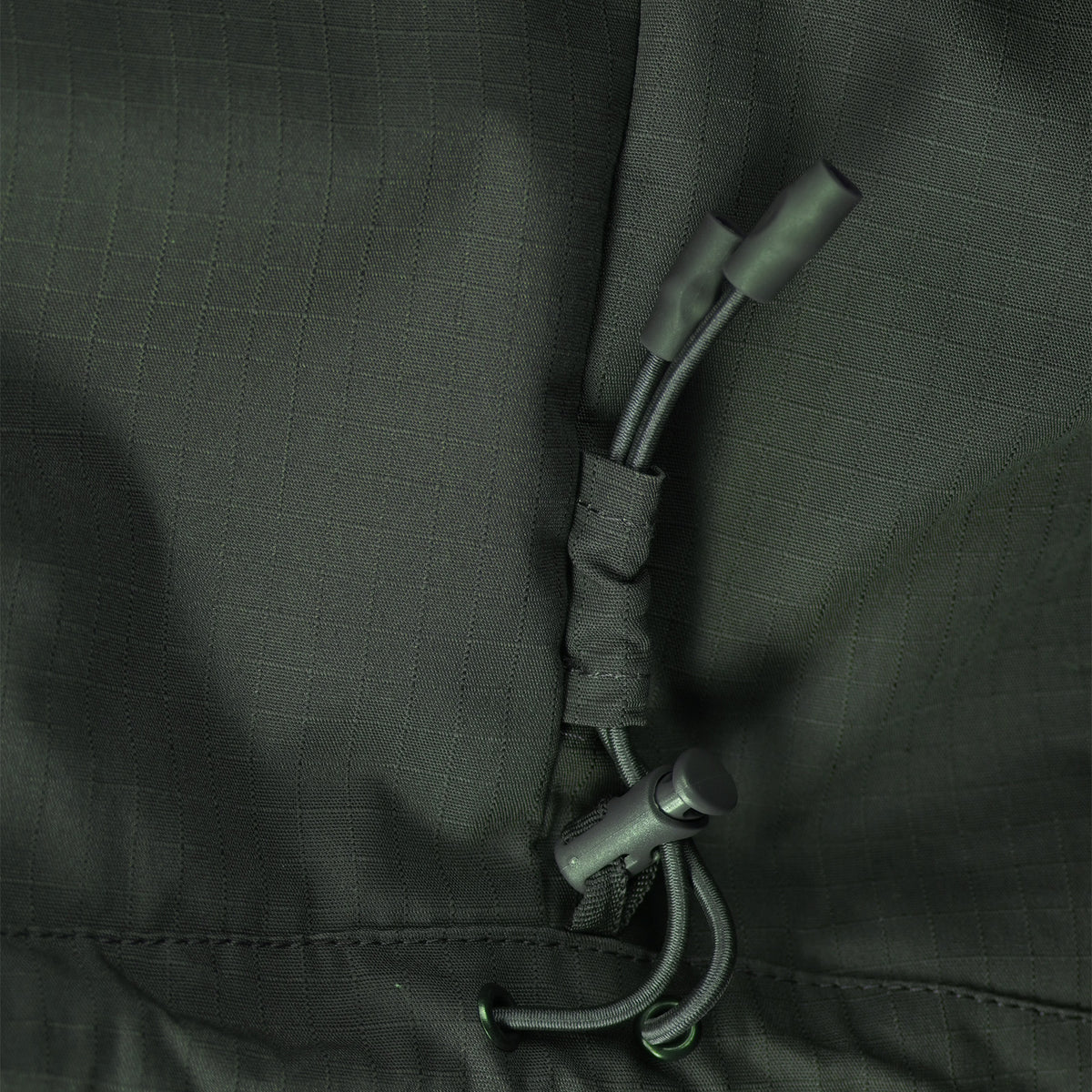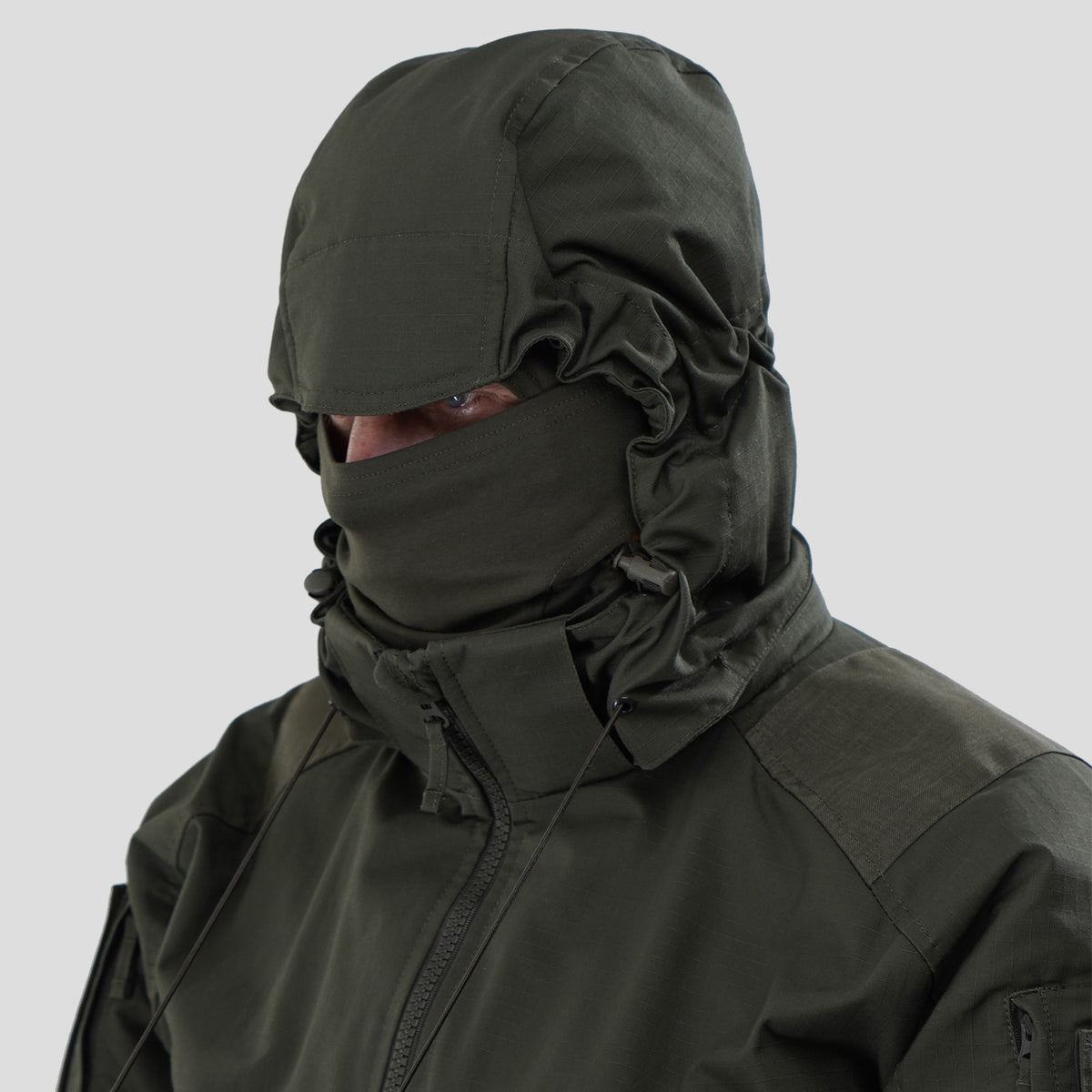 For active use in various conditions, the elbows, shoulders, waist and belt, which experience the greatest impact, are additionally reinforced with CORDURA® 500d Olive Brookwood® USA fabric, which provides greater resistance to abrasion and tearing and increases protection during operations. The jacket is maximally adapted for wearing a protective vest, gear harness and other equipment.