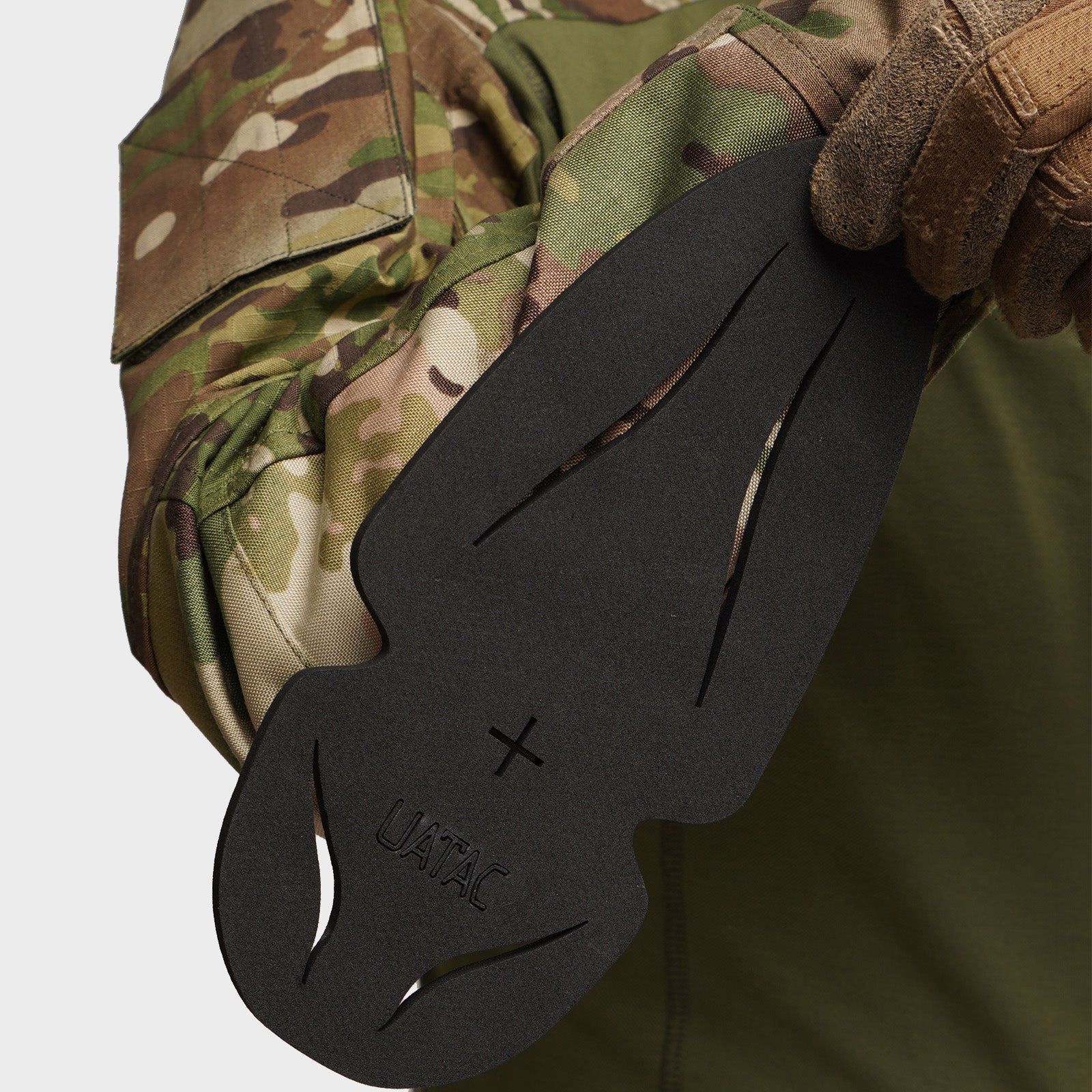 - The shirt comes with insertable elbow pads (included), made from EVA material. The outer side of the elbows is reinforced with durable CORDURA® 500d MultiCam Brookwood® USA, providing additional protection and longevity.
