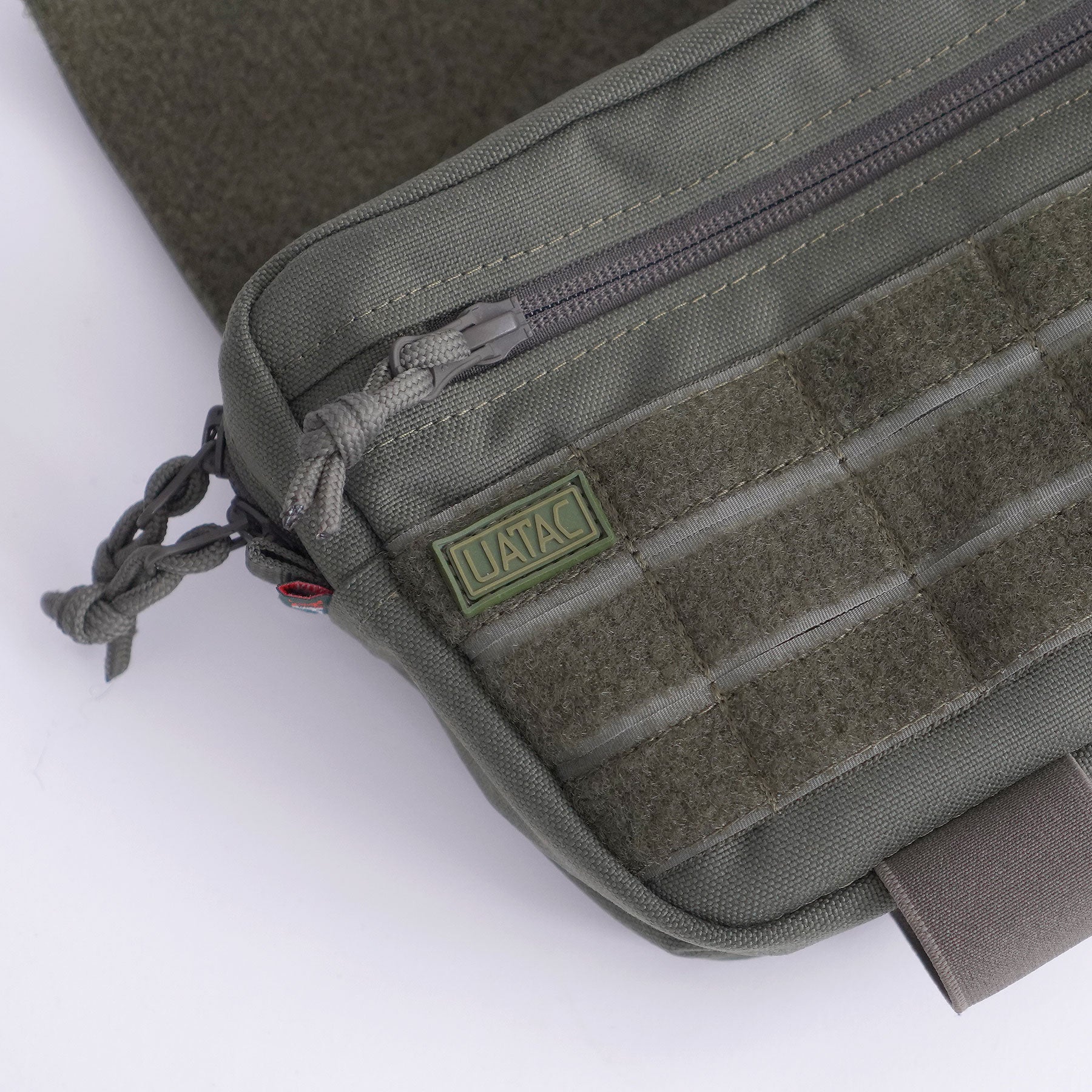 The UATAC pouch is made of high-quality Cordura 1000D fabric, which ensures its strength and durability even in extreme conditions of use. It is securely attached to the plate carrier with a wide velcro panel of YKK brand zippers. The front of the pouch has a molle interface A zippered pocket on the front of the pouch.