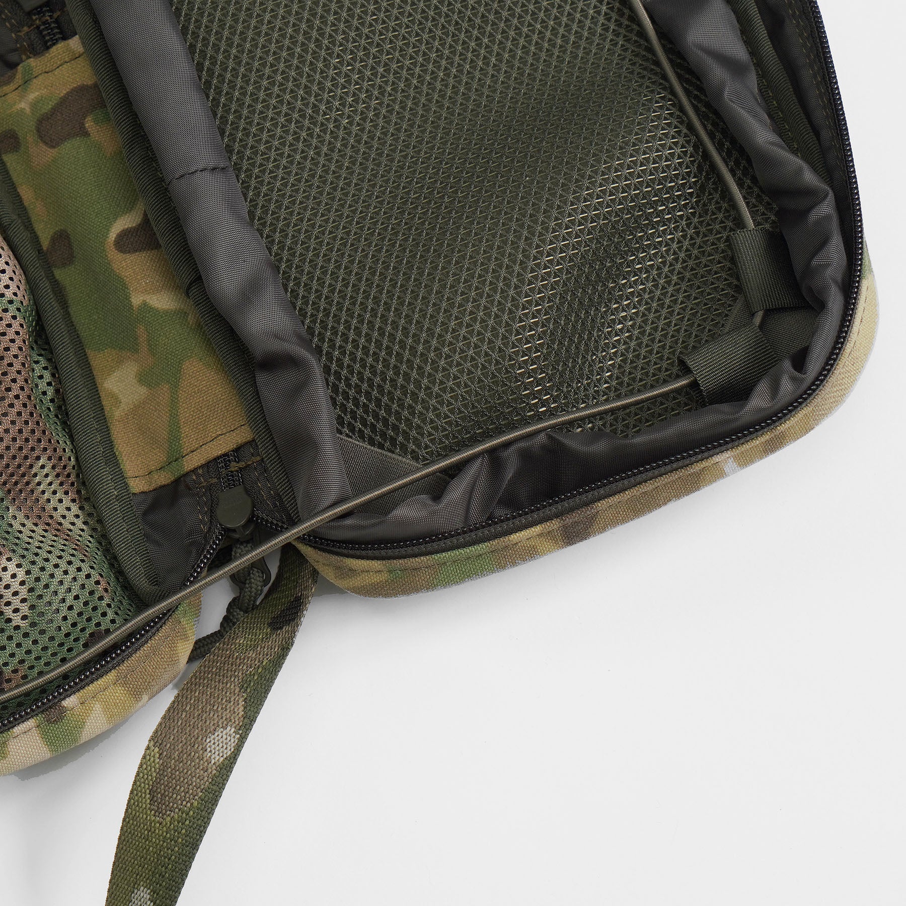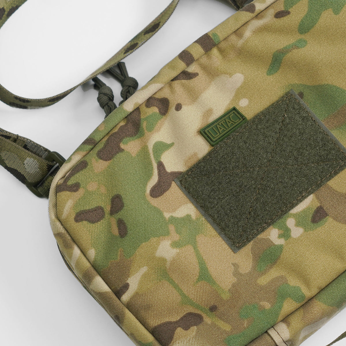 The UATAC tablet pouch is made of high-quality dense Cordura 1000D fabric, which ensures its strength and durability even in extreme conditions of use. It is equipped with two types of handles for easy carrying. The first is a strap that can be worn over the shoulder. The second is a small handle that allows you to easily carry the pouch in your hands. The pouch is attached using the MOLLE system. This ensures a stable hold of the pouch even during active movements and actions. Inside the pouch there are sewn tapes that guarantee a secure fit for your tablet. In addition, the pouch has two pockets where you can conveniently put your charger, documents, or other small items. They allow you to store important items separately from your tablet and provide easy access to them. Our pouch fits tablets up to 10 inches in size and can hold the device at a 90° angle for comfortable use.