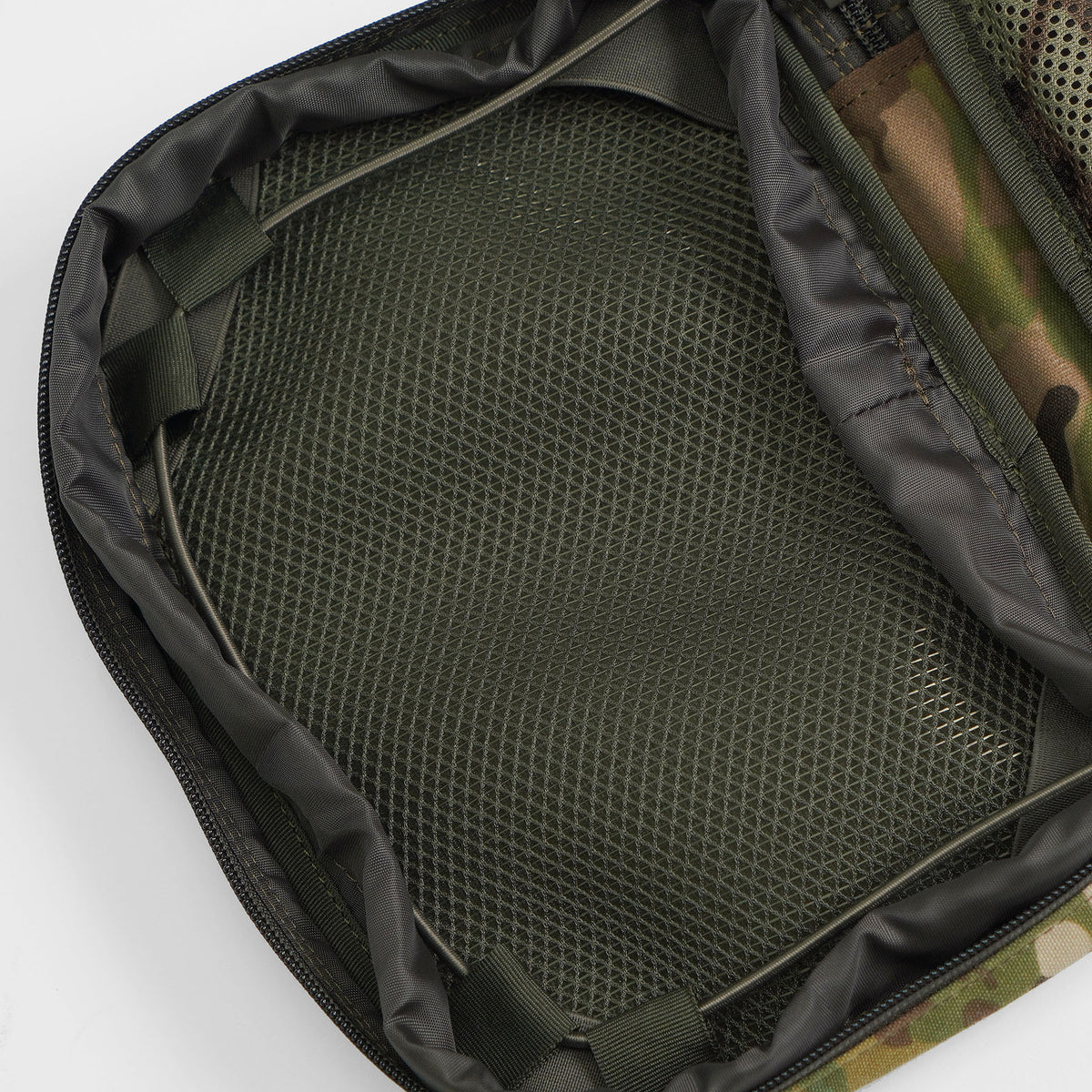 The UATAC tablet pouch is made of high-quality, dense Cordura 500D fabric, which ensures its strength and durability even in extreme conditions of use. It is equipped with two types of handles for easy carrying. The first is a strap that can be worn over the shoulder. The second is a small handle that allows you to easily carry the pouch in your hands. The pouch is attached using the MOLLE system. This ensures a stable hold of the pouch even during active movements and actions. Inside the pouch there are sewn tapes that guarantee a secure fit for your tablet. In addition, the pouch has two pockets where you can conveniently put your charger, documents, or other small items. They allow you to store important items separately from your tablet and provide easy access to them. Our pouch fits tablets up to 10 inches in size and can hold the device at a 90° angle for comfortable use.