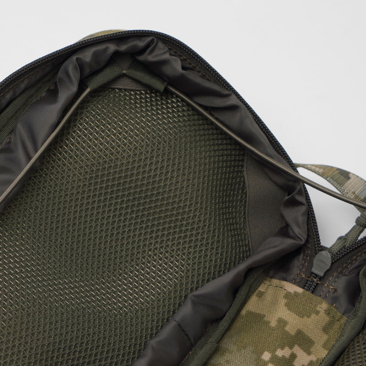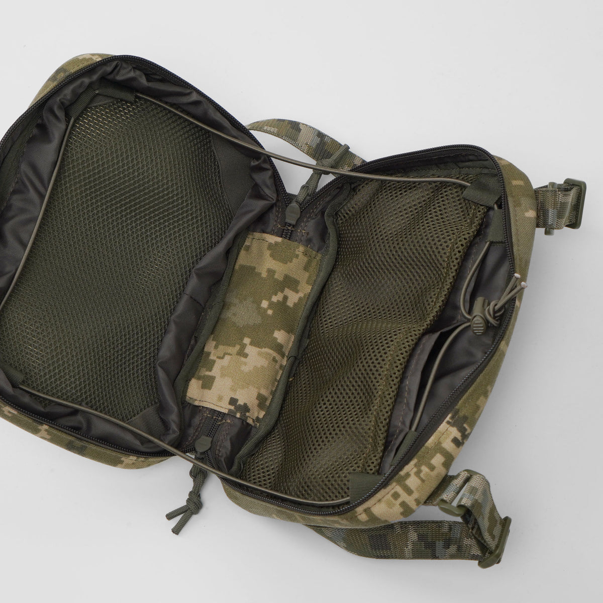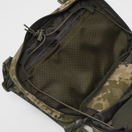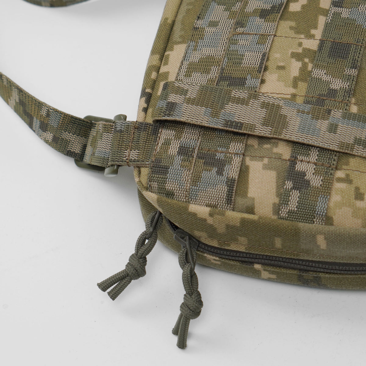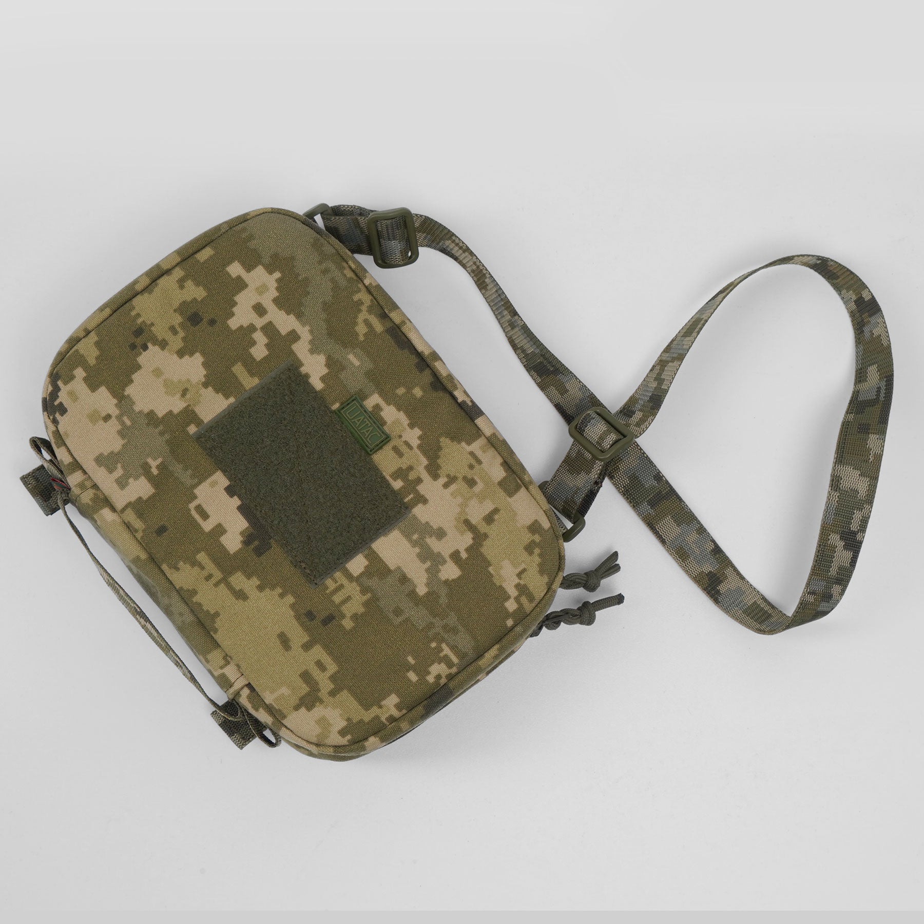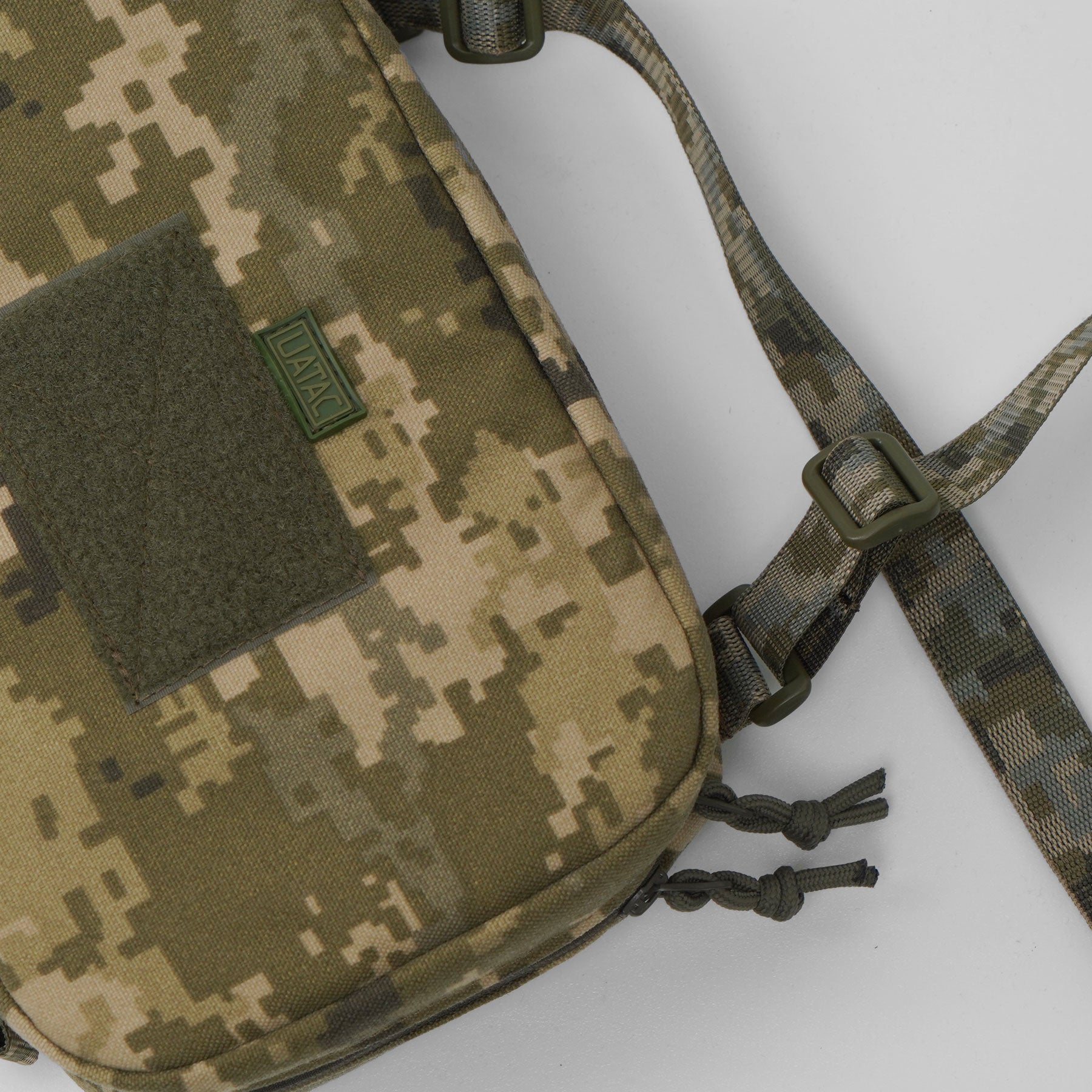 The UATAC tablet pouch is made of high-quality dense Cordura 1000D fabric, which ensures its strength and durability even in extreme conditions of use. It is equipped with two types of handles for easy carrying. The first is a strap that can be worn over the shoulder. The second is a small handle that allows you to easily carry the pouch in your hands. The pouch is attached using the MOLLE system. This ensures a stable hold of the pouch even during active movements and actions. Inside the pouch there are sewn tapes that guarantee a secure fit for your tablet. In addition, the pouch has two pockets where you can conveniently put your charger, documents, or other small items. They allow you to store important items separately from your tablet and provide easy access to them. Our pouch fits tablets up to 10 inches in size and can hold the device at a 90° angle for comfortable use.