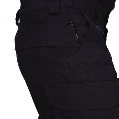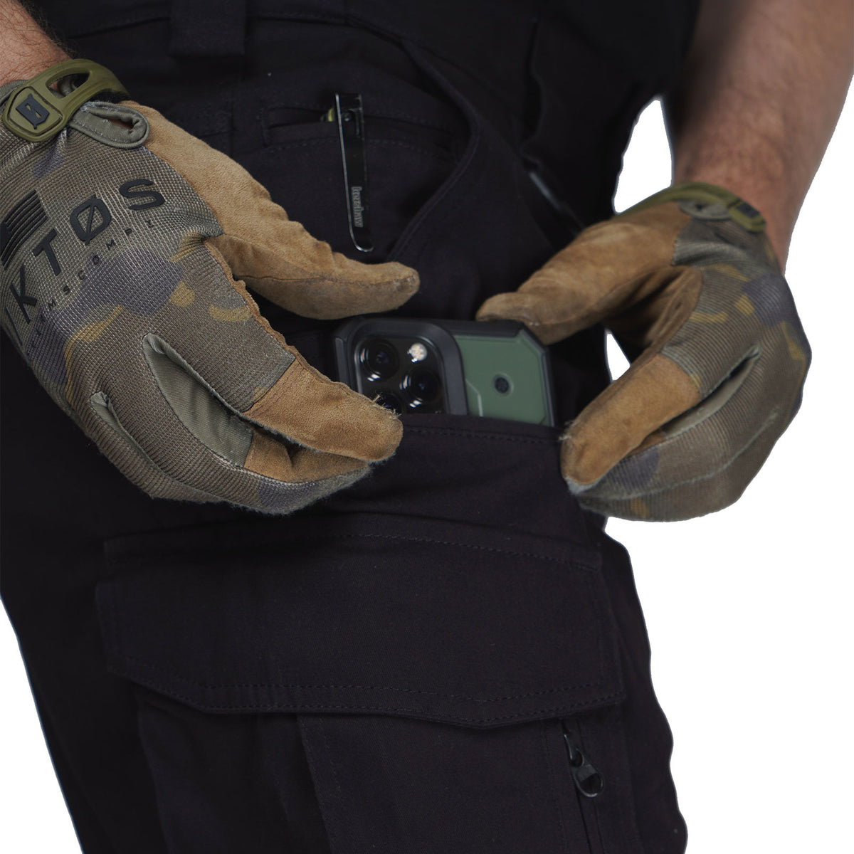 - 2 large cargo pockets, 2 front pockets with flashlight compartments, phone pocket on the right side, 2 back pockets