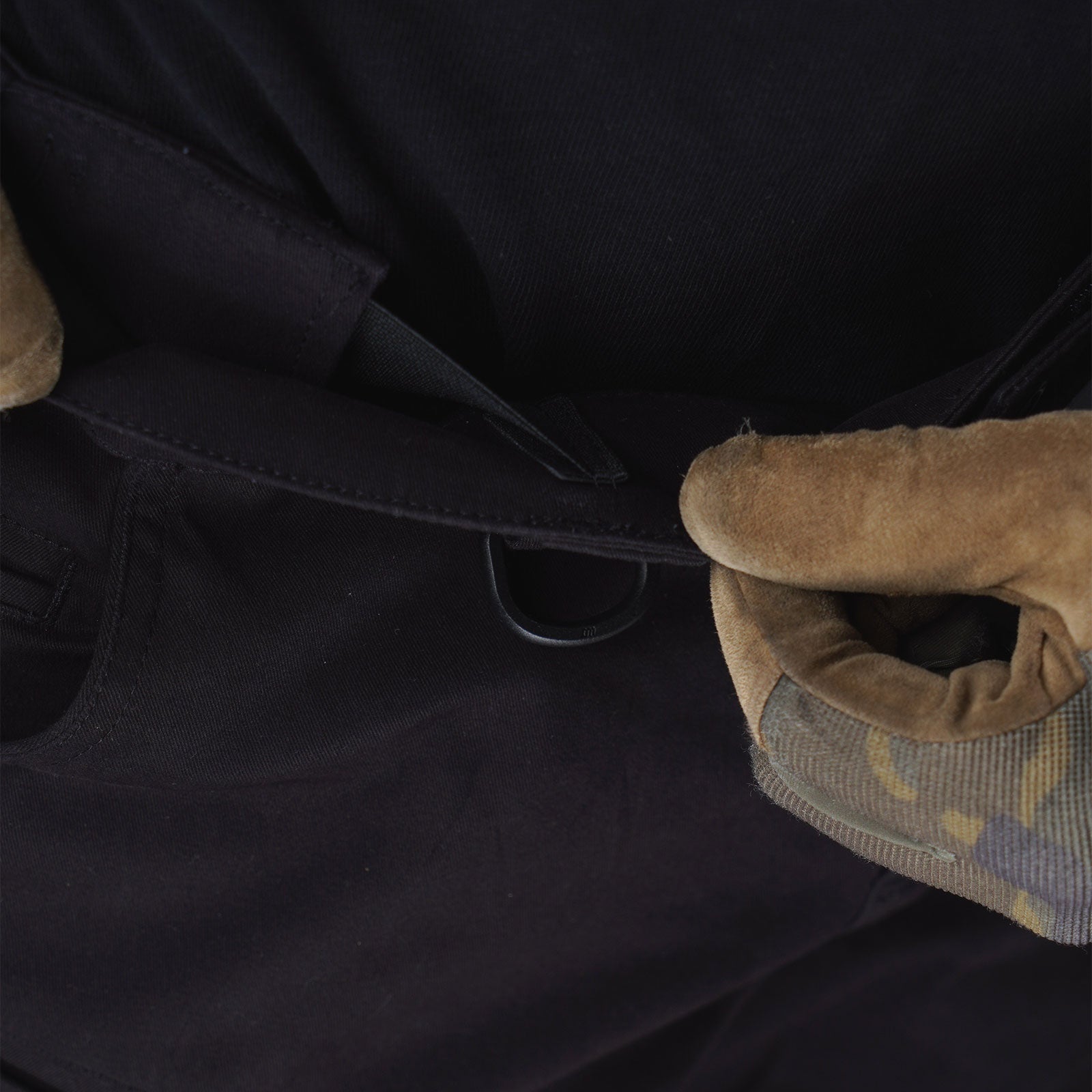 Large cargo pockets with Velcro. A side zipper on the cargo pocket allows easy access while seated.