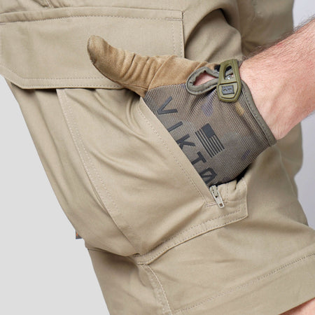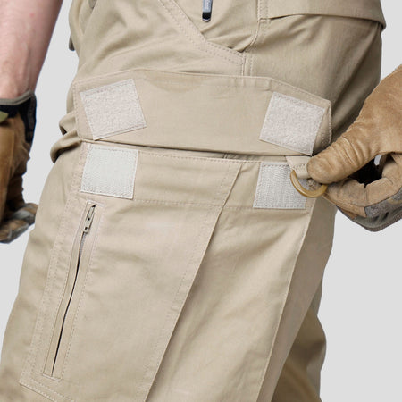 Large cargo pockets with Velcro. A side zipper on the cargo pocket allows easy access while seated.