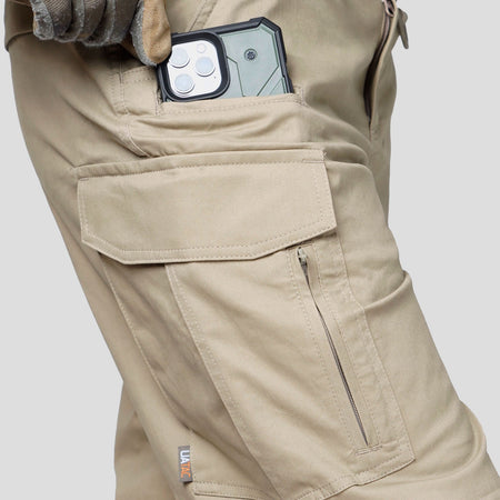 - 2 large cargo pockets, 2 front pockets with flashlight compartments, phone pocket on the right side, 2 back pockets