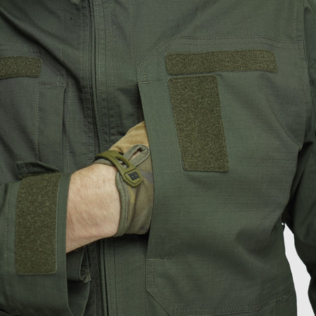 Velcro panels on the sleeves and chest — ideal for attaching patches, insignia, or ID tags.