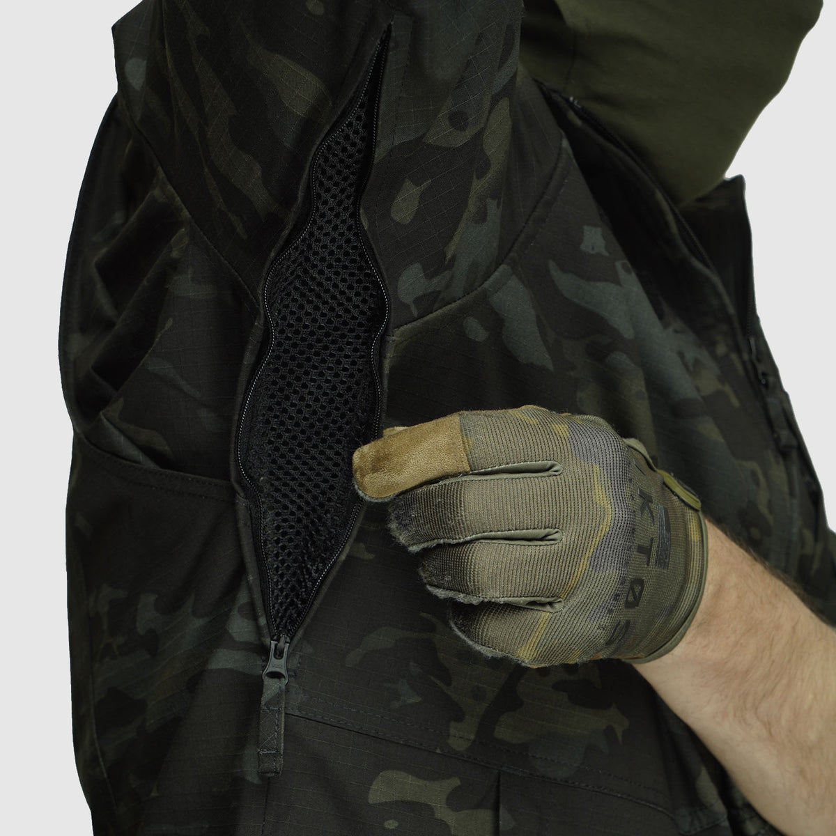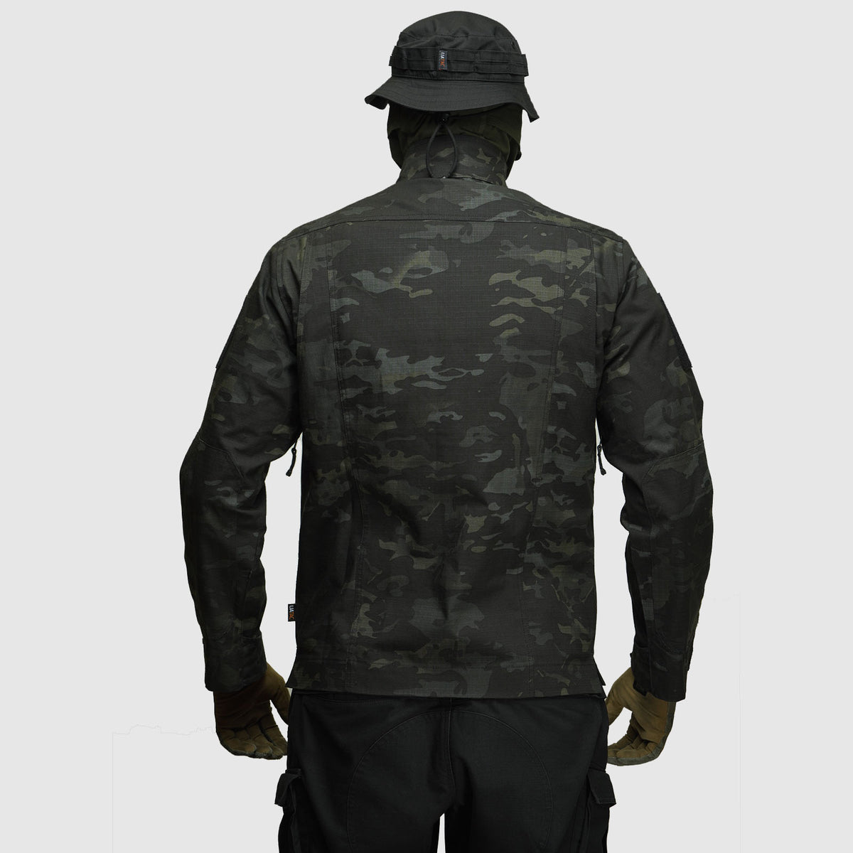 The UATAC jacket in Multicam Black offers a perfect blend of comfort, functionality, and reliability for true professionals. Its ergonomic cut ensures freedom of movement even during intense activity.