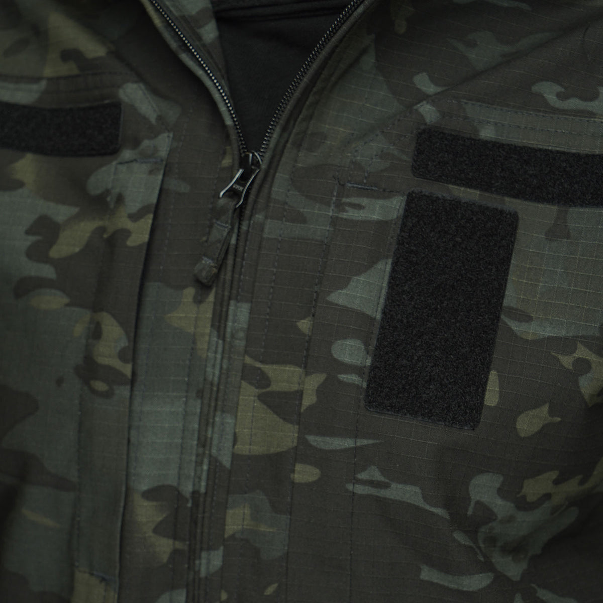 Velcro panels on the sleeves and chest — ideal for attaching patches, insignia, or ID tags.