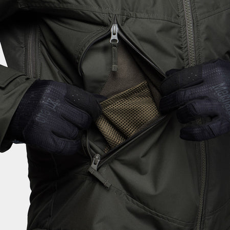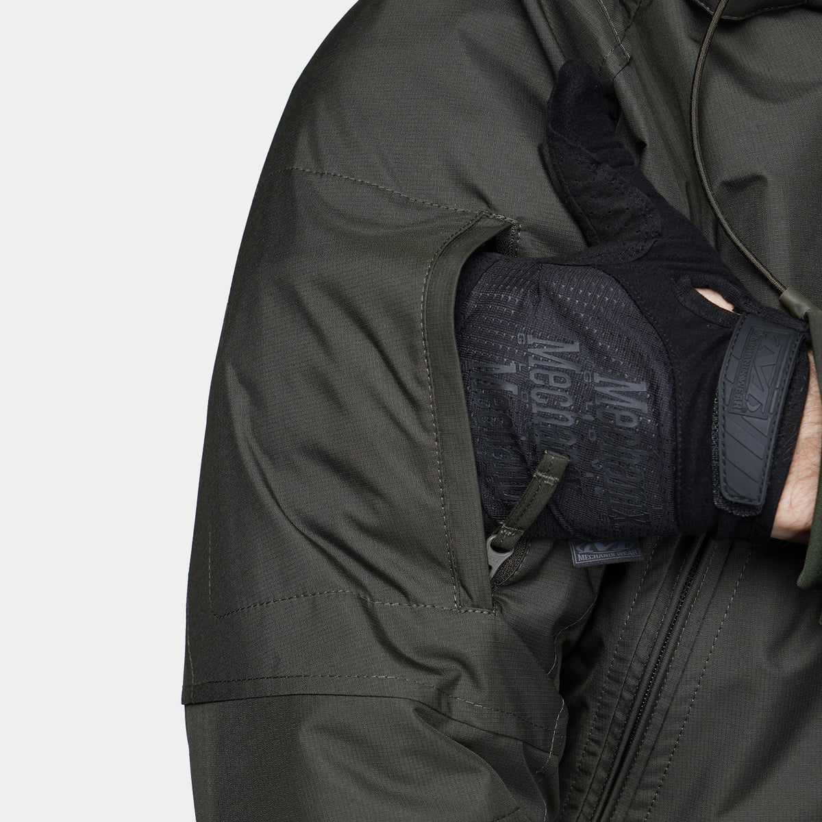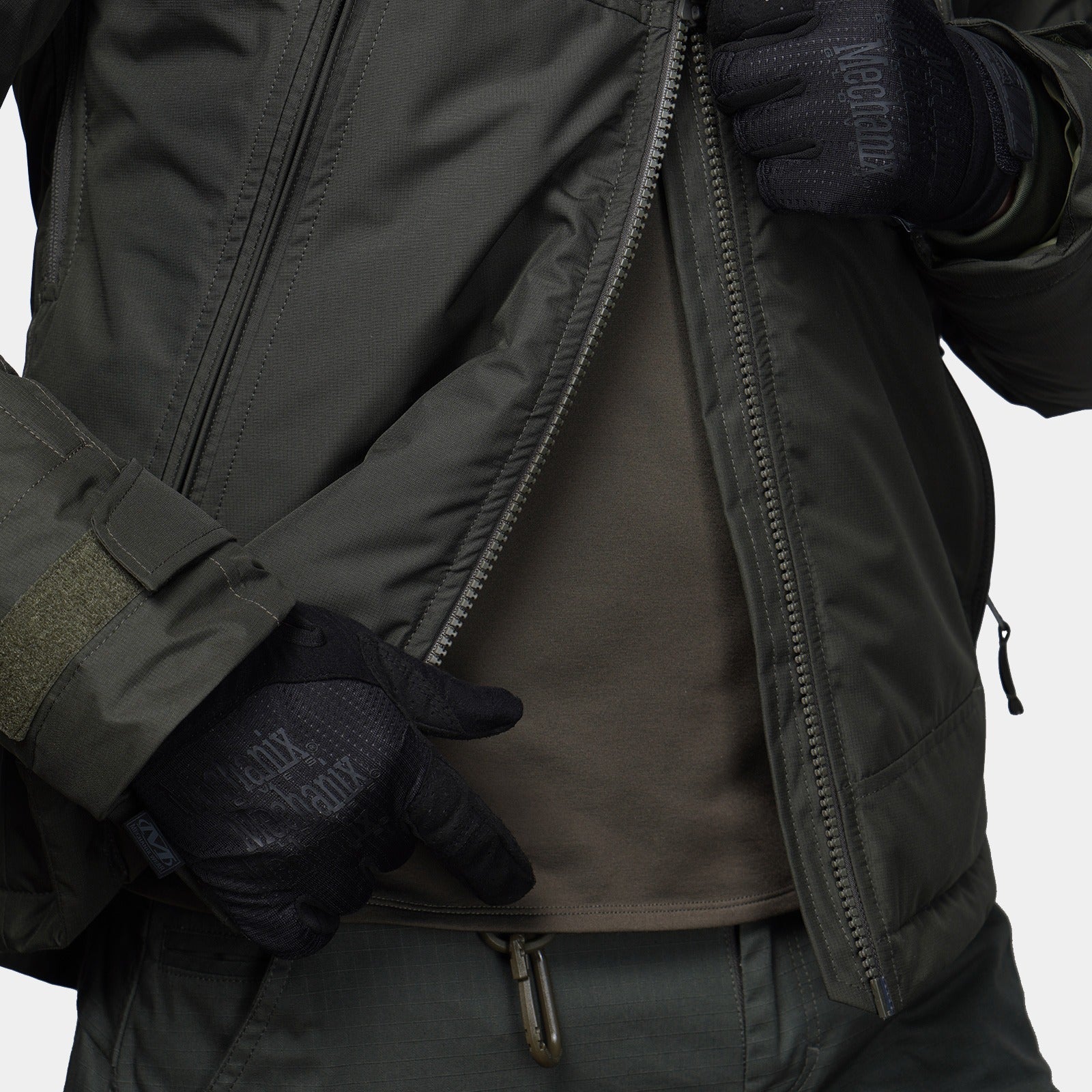 The UATAC Olive Membrane Climashield Apex 136 tactical winter jacket is specially designed for military personnel who are actively moving and performing tasks. The design and placement of all jacket elements take into account the needs of the military, as well as the experience of using military clothing in battles.