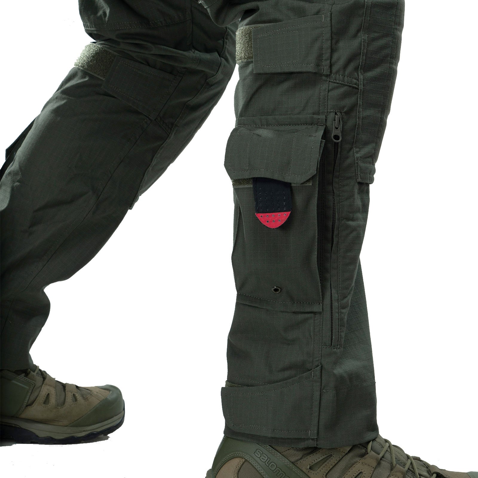 Mugavaks kasutamiseks on pükstel 11 taskut - kaks taskut ees ja kaks taga, 2 suurt veokotit (vasakul - varustatud kahe stabiliseeriva elastikuga veepudeli või ajakirja kinnitamiseks ning karabiiniga; paremal - varustatud kahe võrgustosaga), kaks esimest taskut põlvekaitsme kõrguse reguleerimisega sees, kaks väikeste asjade taskut alumises osas, nuga tasku paremal küljel.