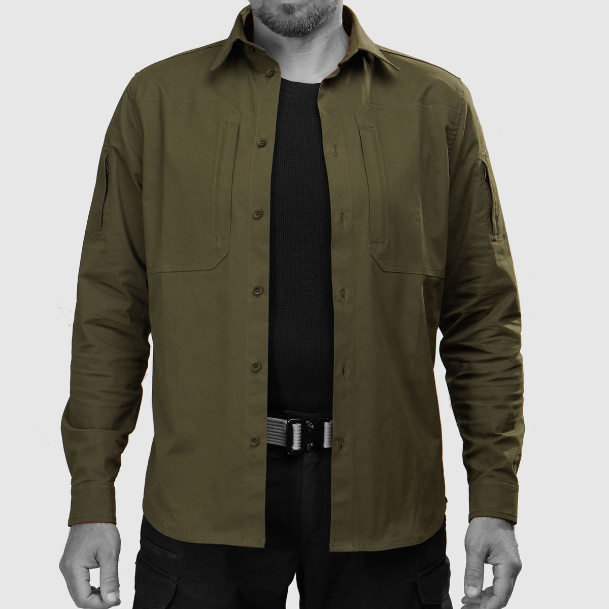 The UATAC shirt is a great choice for everyday use and festive events. Made of pleasant to the touch fabric consisting of 98% cotton and 2% elastane in Ripstop. The shirt has a classic yet modern look and fits perfectly on any figure. Two front pockets on the sleeves in the forearm area with a zipper. The sleeve cuffs have two buttons for convenient volume adjustment.